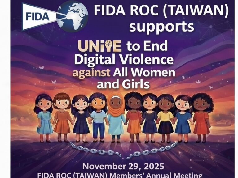 國際婦女法學會”Federacion Internacional De Avocadas”,簡稱FIDA.英文名稱為”International Federation of Women Lawyers”,法文則為”Fédération Internationaledes Fenmes Juristes”。FIDA成員包括法官、律師、法務行政人員、法學 教授、學生等,並以女性為主。男性法界人士或會員家屬,亦可成為 該會之友參與雙年會、區域性會議等各項活動。