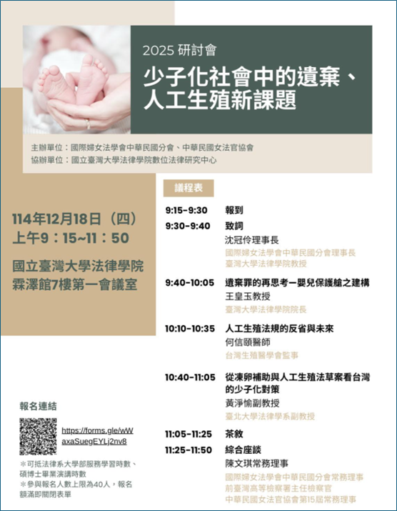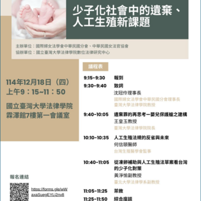 2025年12月18日主辦「少子化社會中的遺棄、人工生殖新課題」研討會