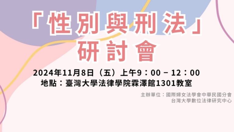本學會與和臺灣大學合辦「性別與刑法」研討會,歡迎會員報名參加 時間:2024年11月8日(五)上午9:00-1…